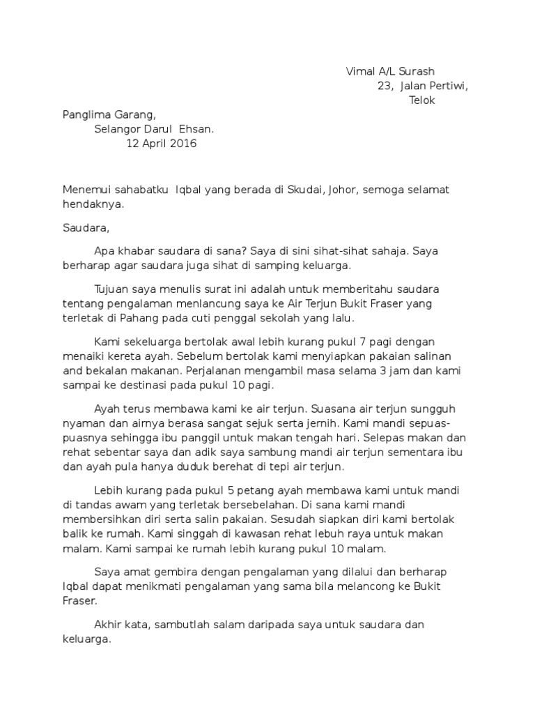 Surat Tidak Rasmi Kepada Kawan Tentang Percutian Letter 7saudara Com